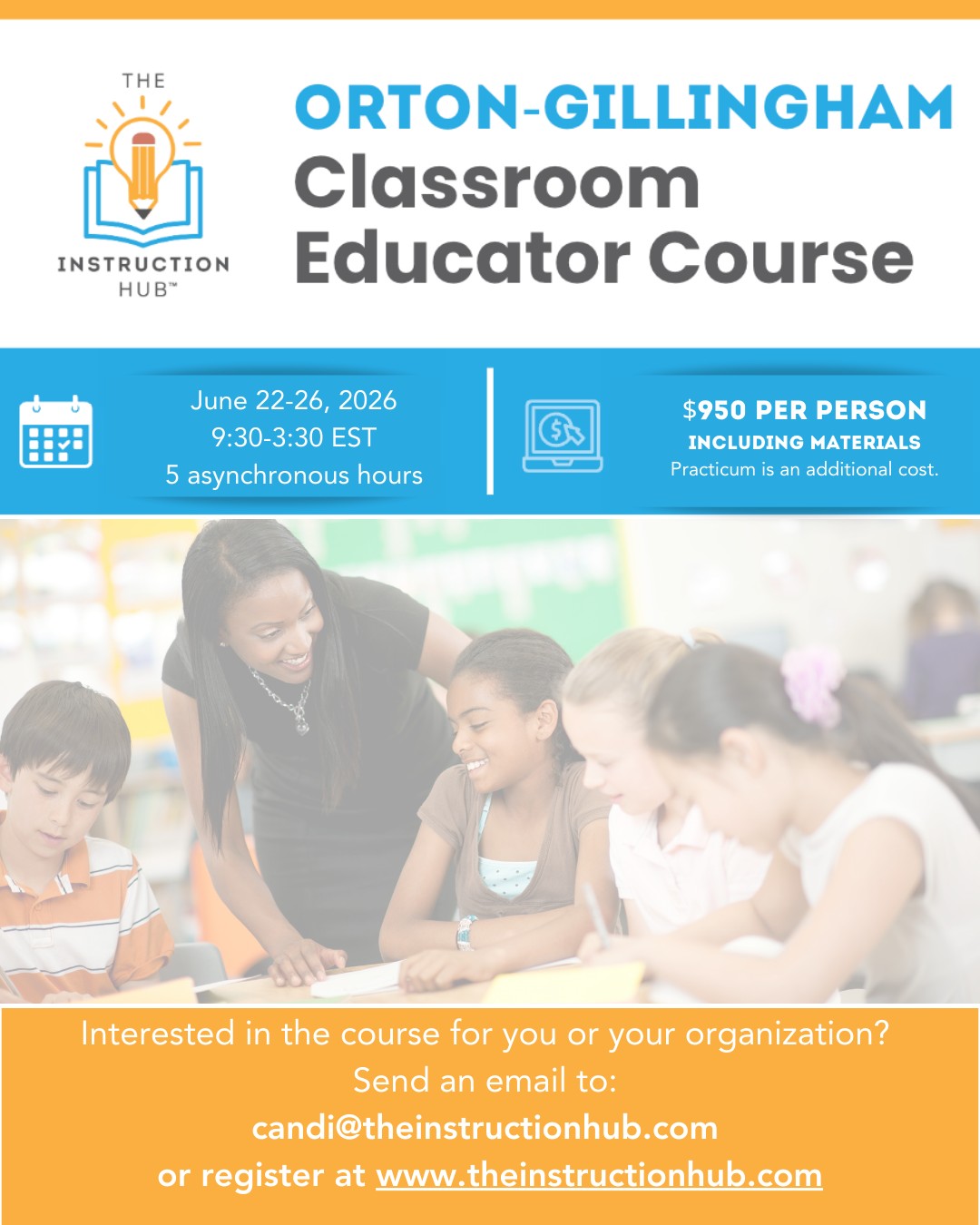 This course fulfills all requirements set by Orton-Gillingham Academy for the Classroom Educator curriculum.